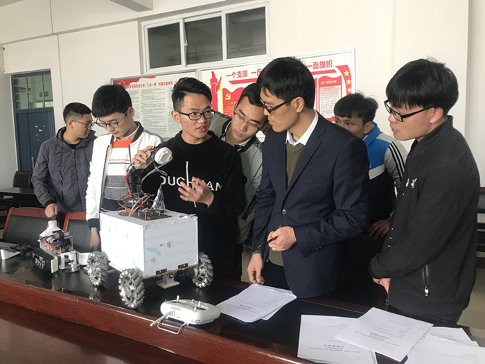 3044am永利集团3044noc根据学校要求,成立了以党总支书记刘超为组长的专家评审小组,副书记杨杰、教研室主任李明、刘从虎老师、何康老师、罗鹏老师作为评委参与评审。参赛选手依次进行科技作品展示和现场答辩。各小组从参赛作品的创新性、应用性、科学性和实用性等方面进行现场演示,评委对各组作品进行现场评审并提出了改进意见。